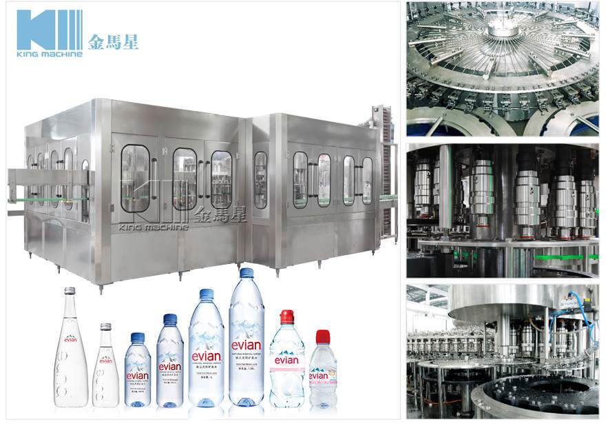 Automatic Water Filling Machine is used in the beverage filling operations. The three functions of bottle wash, fill and seal are composed in one body of the machine. The whole process is automatic.