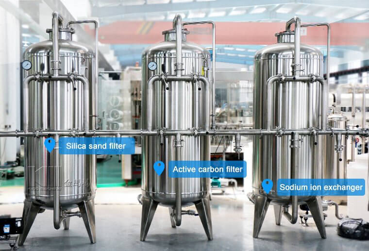 Silica sand filter + Active carbon filter + Sodium ion exchanger + Precision filter + Security filter