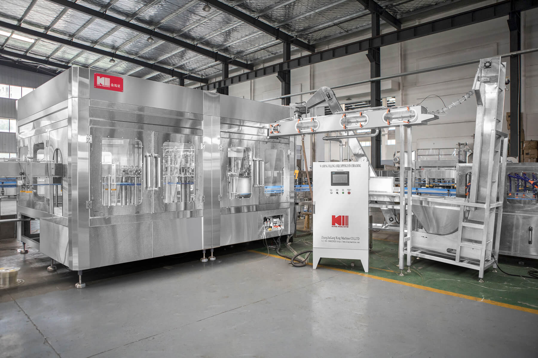 Meanwhile, King Machine filling machine can realize multiple functions in one equipment. One machine can do water, carbonated drinks and hot filling products.